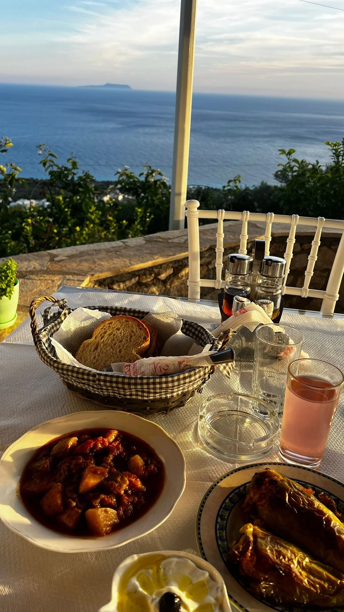 We installeerden ons in een strandtent, met van die relaxte bedjes met een parasol waar je de hele dag kunt liggen zonder je schuldig te voelen. Met een boek, een iced latte (want alcohol was er toch niet bij) en uitzicht over de Ionische Zee. Ik kan je vertellen: dit was exact het tempo dat ik nodig had.