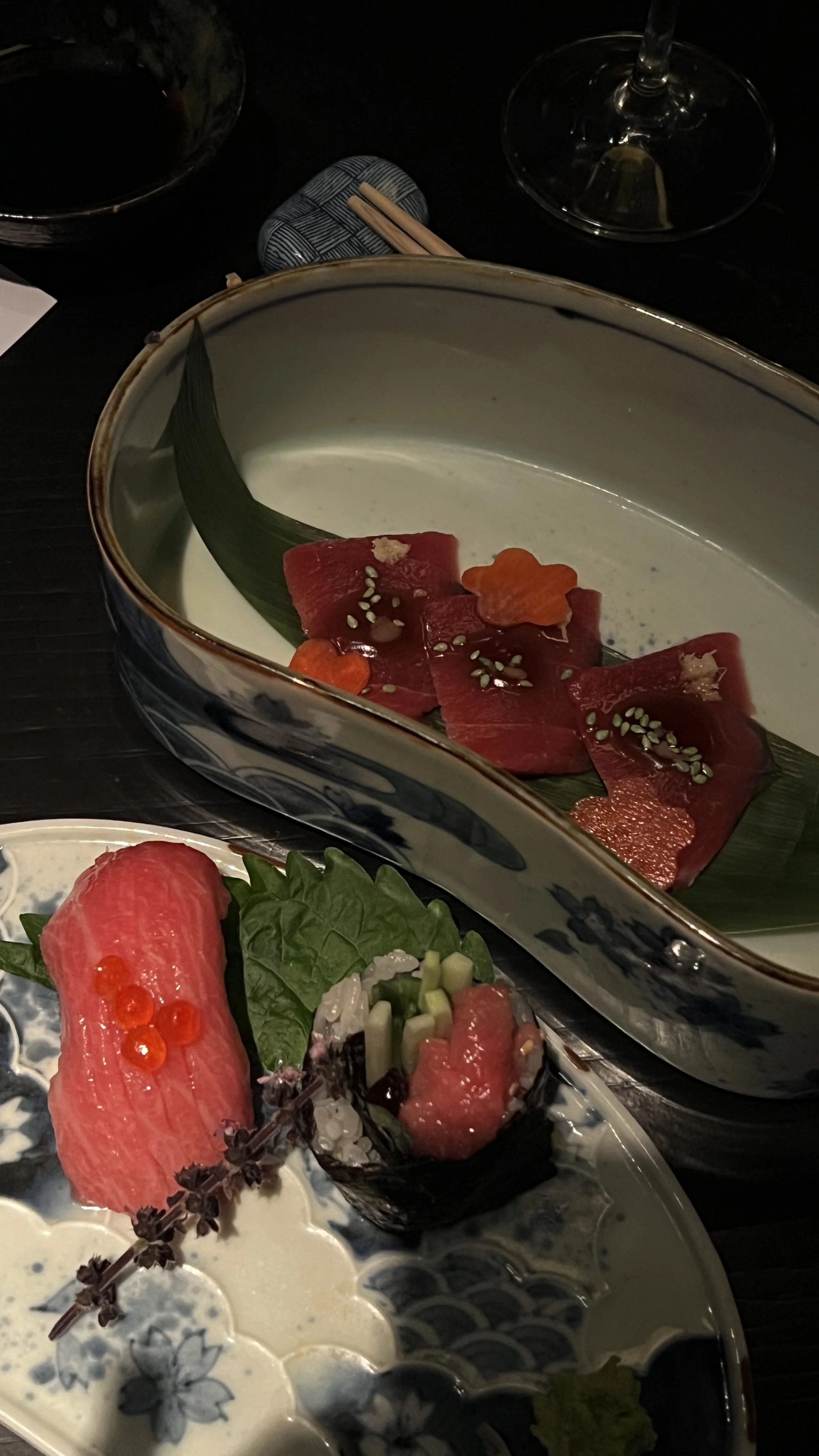 Onze groep van zes personen moest vanwege de groepsgrootte kiezen voor het 8-gangen omakase diner. Hoewel dat geen straf is, voelde het wat teleurstellend om geen keuzevrijheid te hebben.