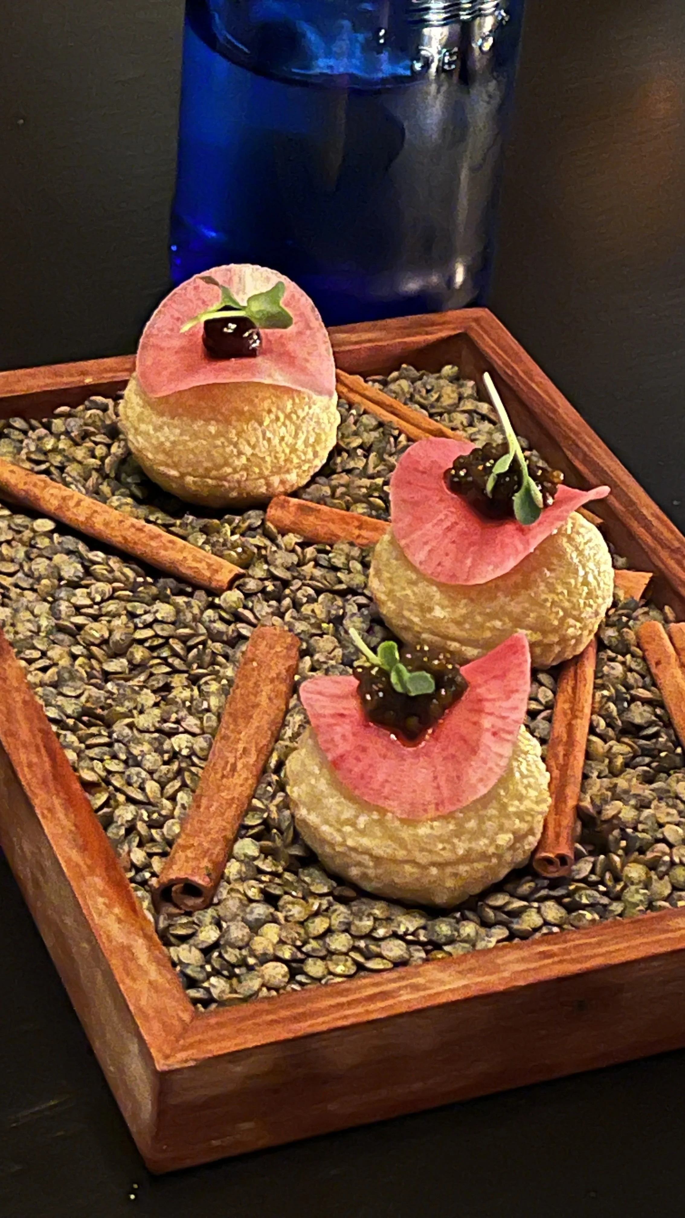 De avond opende met gegrilde edamame boontjes en een krachtig sesam dipsausje