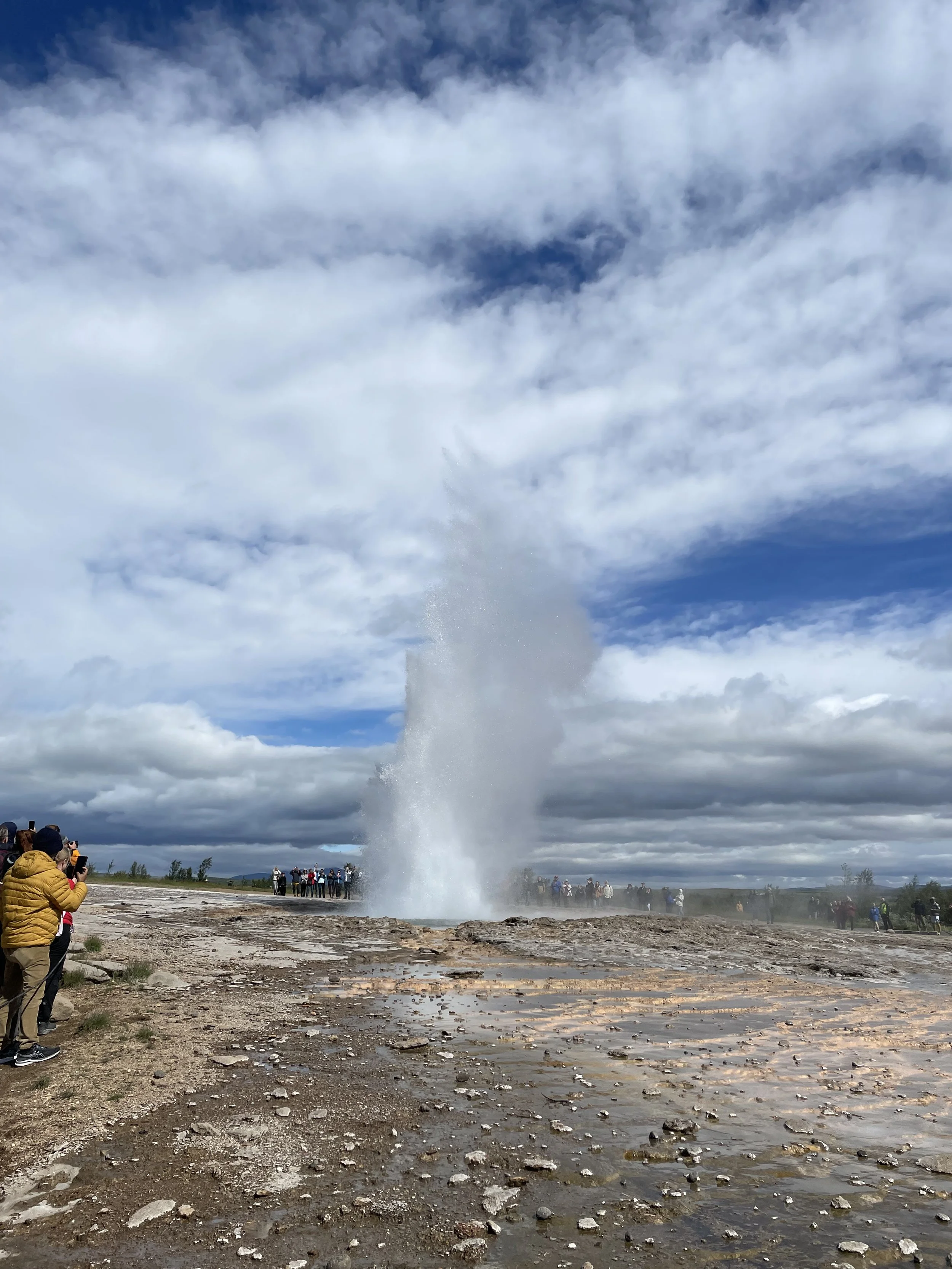 Na de lunch reden we naar de bezienswaardigheden van de Golden Circle. Geysir spoot metershoog kokend water omhoog, en de Gulfoss waterval maakte indruk.