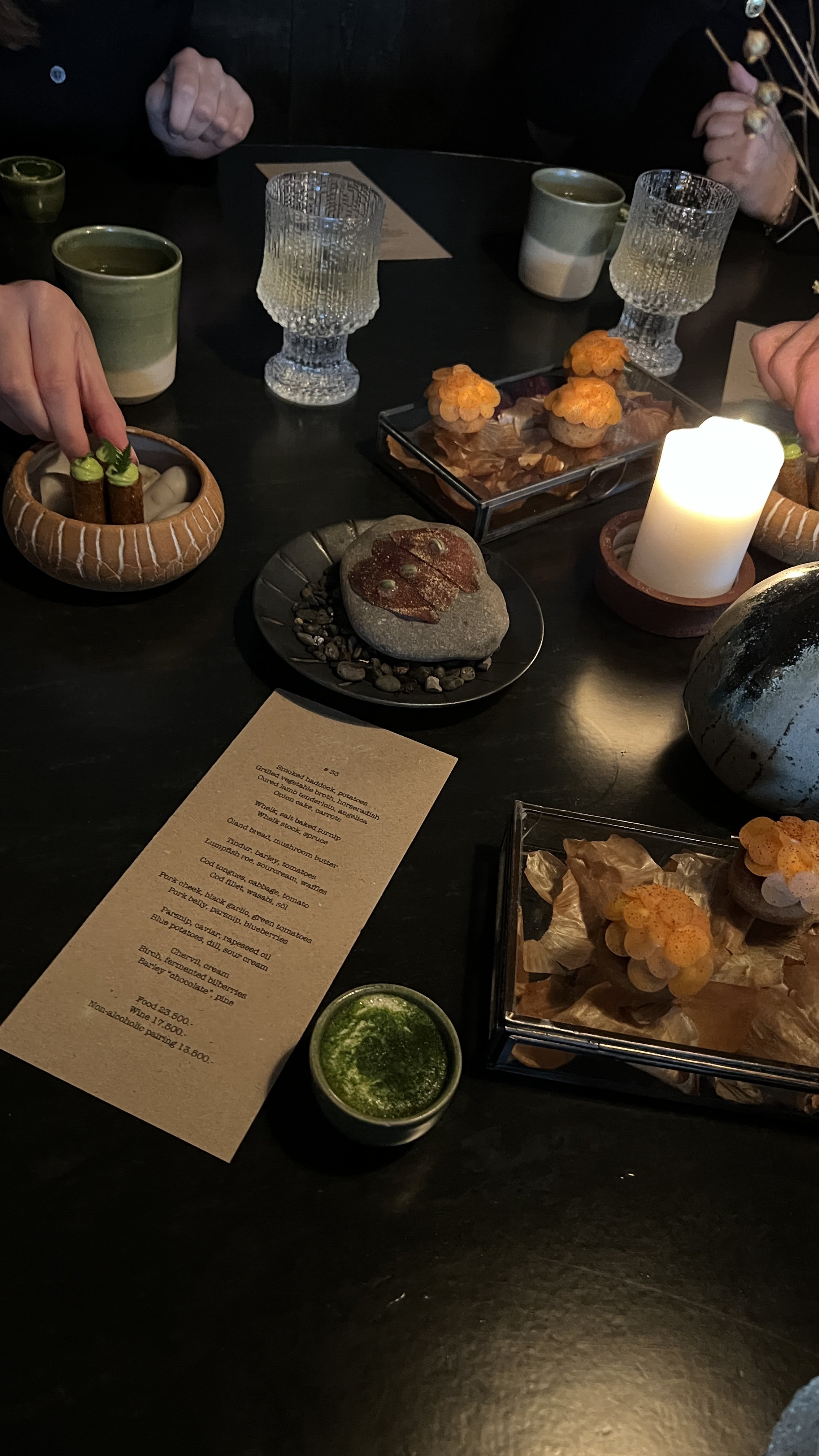 Ondanks het Michelinsterrenlabel hing er een ongedwongen sfeer bij Dill. Het tasting menu bood bijzondere en creatieve gerechten, geïnspireerd op de IJslandse keuken. We kozen allemaal voor het non-alcoholische pairing, waarbij bijpassende kombucha werd geserveerd. Elk gerecht was even verrukkelijk. Het was geweldig om deze ervaring te delen met mijn familie. Zelfs mijn vader was er stil van, en dat gebeurt niet vaak!