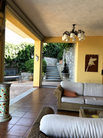 We werden afgezet bij Villa Angela, het hotel waar we 11 dagen zouden verblijven. Omdat het hotel bovenop een bergwand staat, konden we meteen al genieten van het adembenemende uitzicht over Taormina en vulkaan Etna. Toen we de binnenplaats opliepen begroette een heerlijke zoete geur van Toscaanse jasmijn ons. Ada, de mega vriendelijke dame van de receptie, verwelkomde ons hartelijk en begeleidde ons, na een uitgebreide uitleg over het hotel, Taormina en wat er allemaal te beleven viel, naar onze suite. We verbleven in de Etna suite - een grote ruimte met twee gescheiden kamers. Ideaal voor als je met een gezin bent, maar toch ook wel eens privacy nodig hebt. Bij binnenkomst lag er een gekoelde fles prosecco voor ons klaar én een gesigneerd bericht van Jim Kerr: 'Happy Anniversary'! We toastten op het balkon op het begin van een fijne vakantie.